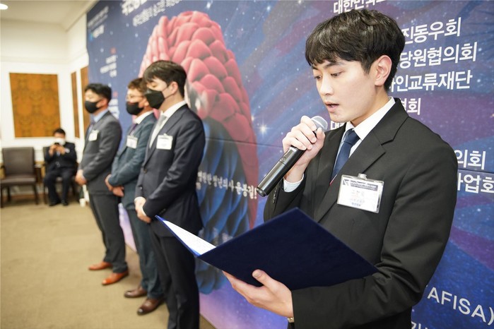 | ▲ 아시아 청년연맹, 청춘포럼, (사)청년등대, 유스토피아, 오발코리아, 청사단 등 애국청년공동선언서, 낭독 청사단 고형준 청년 |