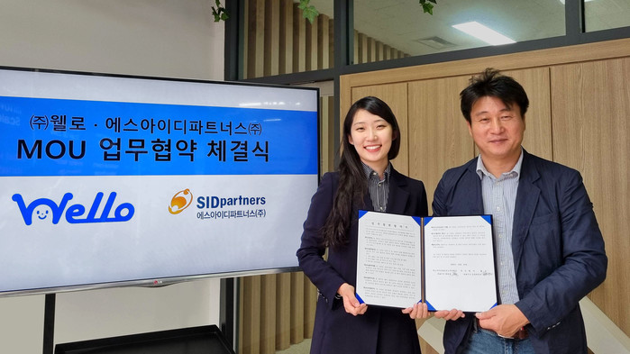 | ▲ ㈜웰로 김유리안나 대표이사(왼쪽)와 에스아이디파트너스㈜ 권대웅 대표이사(오른쪽)가 업무협약을 체결했다<사진제공=웰로> |