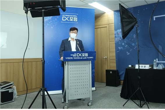| ▲ 현대경제연구원 이장균 수석연구위원이 ‘디지털 변혁(DX), 성장을 가속화하다’을 주제로 강연을 하고 있다. |
