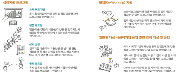| ▲ 사회적 기업 성장지원센터 「소셜캠퍼스 온(溫)」 주요 역할이다. (사진출처=한국사회적기업진흥원) |