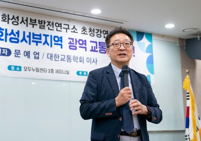 강연 주제는 미래를 위한 화성 서부지역 광역 교통망 확충 방안 모색으로 대한교통학회 이사인 문예업 박사가 강연을 맡았다.