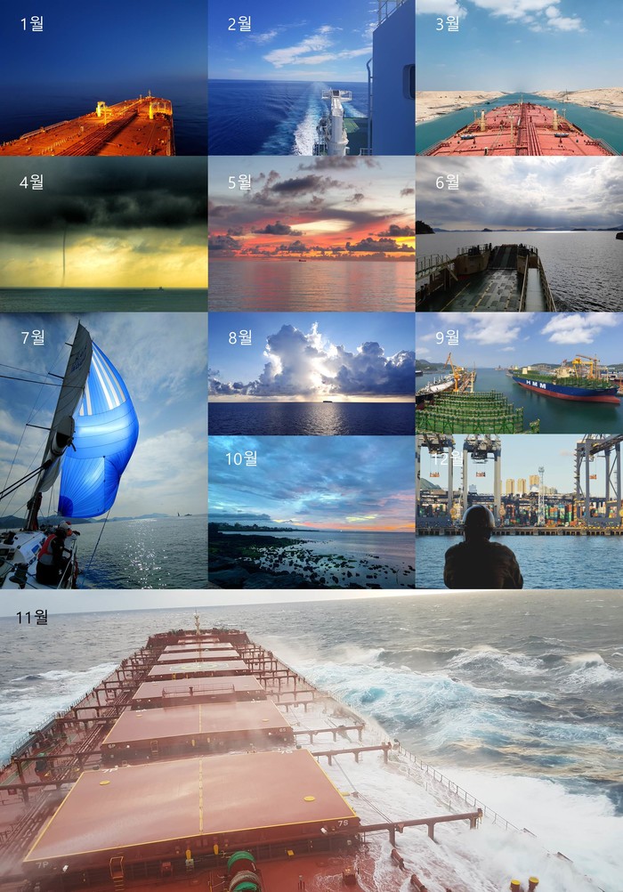 지난해 사진 출품작 중 SK해운 이항사 최봉근(1월), 대한해운 가족 장나현(2월), 삼기사 조성호(3월), HMM 일항사 이덕형(4월), 대한해운 선장 배재철(5월), 부산해사고 김정현(6월), 일반 이순우(7월), 에이치라인 선장 조기주(8월), HMM 이항사 장세윤(9월), 배정고등학교 정우진(10월), 에이치라인 일항사 김태영(11월), 고려해운 항해사 이성재(12월) 12개 작품을 선정했다.
