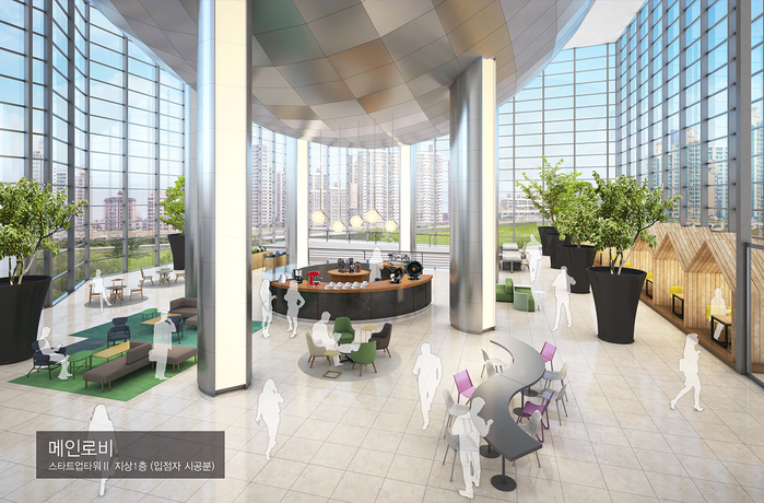 | ▲ '인천스타트업파크' 지상 1층의 메인로비의 상상도이다. (사진출처=인천스타트업파크) |