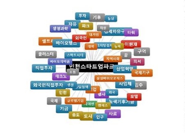 | ▲ '인천스타트업파크' 를 중심으로 소셜미디어에서 화제가 되고 있는 검색어이다. (사진출처=인천스타트업파크) |