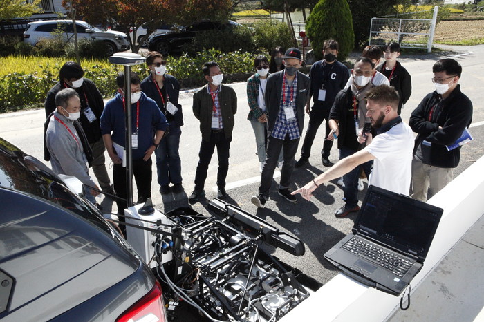 | ▲ 마티아스 Hexagon Detection IDS GeoRadar 아시아 총괄 책임자가 최신 장비에 대한 소개와 기능에 대해 설명하며 참가들과 다양한 의견을 나누고 있다.<사진제공=씨앤에치아이앤씨(주)> |