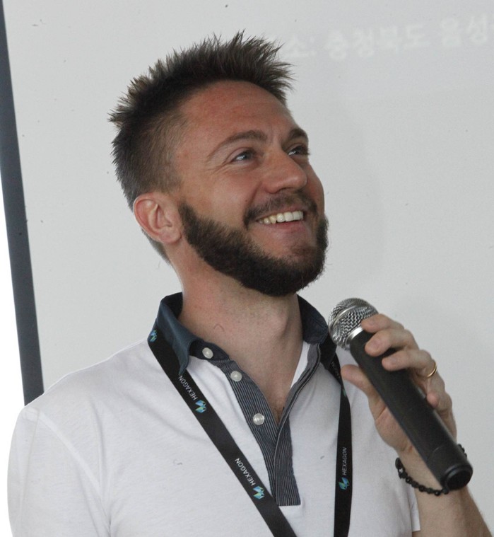 | ▲ 마티아스 Hexagon Detection IDS GeoRadar 아시아 총괄 책임자가 최신 장비들에 대한 기능설명을 하고 있다. |