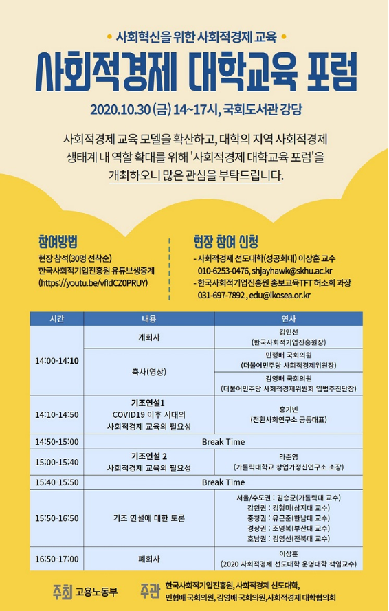 | ▲ 고용노동부에서 주최하는 '사회적 경제 기업 대학교육 포럼' 포스터이다. (사진출처=고용노동부) |