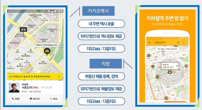 | ▲ '공간정보 창업'의 대표사례는 바로 '카카오택시'와 '직방' 프로그램이다. (사진출처=국토부) |