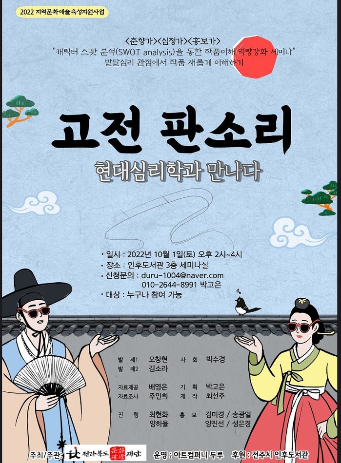 캐릭터들의 주요 강점과 단점을 발달심리 관점에서 접근하여 작품을 새롭게 바라볼 수 있도록 연구한 본 학술행사는 전라북도문화관광재단의 2022년지역문화예술육성지원 사업에 선정되어 진행된다.