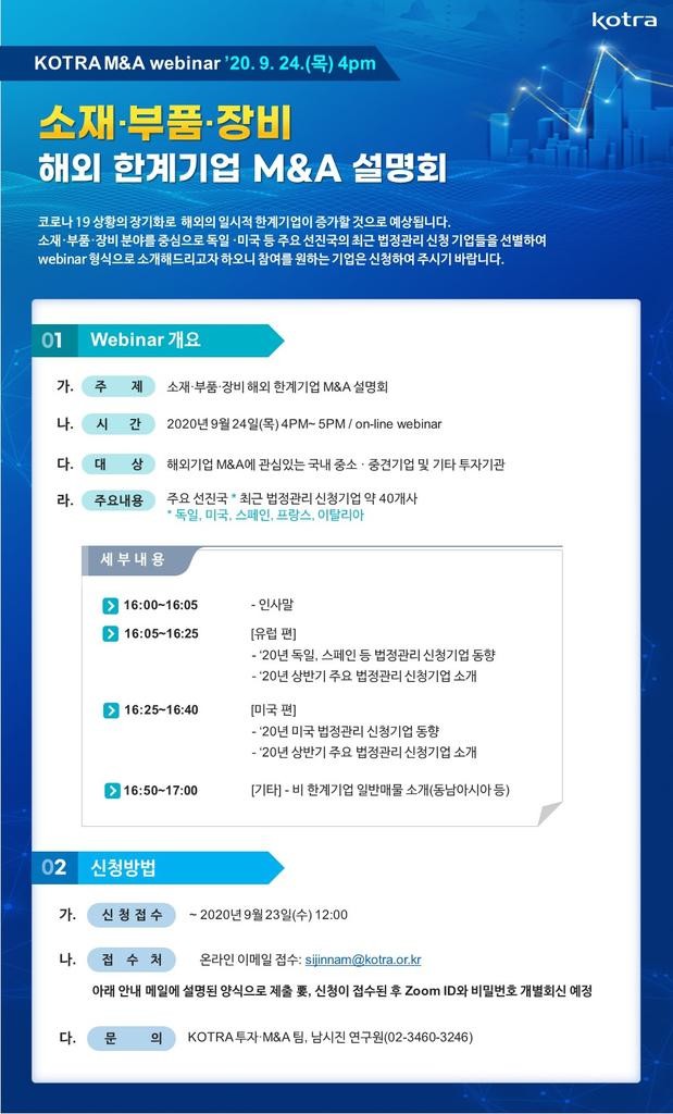 | ▲ '소부장 해외 한계기업 M&A 법정관리 웹 세미나' 포스터이다. (사진출처 = KOTRA) |
