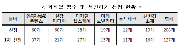 208개 스타트업이 참가한, ‘제 1탄 공모전’은 208개 스타트업이 참여했으며 9월 중 과제별 ‘2차 대면 심층평가’를 통해서 최종적으로 선발됐다.