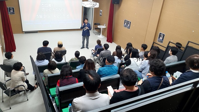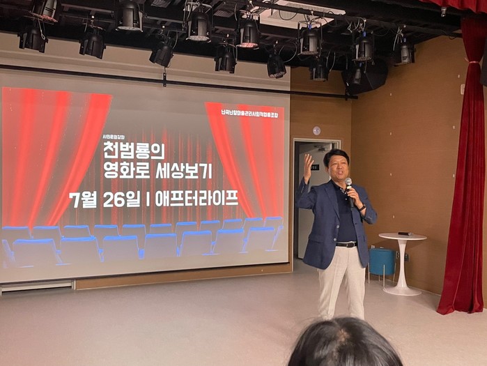 과거 관악FM 영화음악방송 ‘씨네뮤직’ DJ를 진행하며, 영화평론가로의 활동 경력을 가지고 있는 천범룡 이사장은 ‘천범룡의 영화로 세상보기’ 강좌에 재능기부로 참여하며, 영화로 세상보기와 영화 속 숨은 이야기에 대해 강의와 감상평을 나누며 문화의 시간을 수강생들과 함께 공유했다.