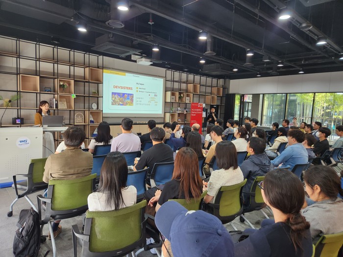 | ▲ 구글의 한지혜 매니저가 스타트업 스쿨 부산에서 ‘디지털 마케팅‘을 주제로 강연하고 있다/사진제공= 머스트액셀러레이터 |
