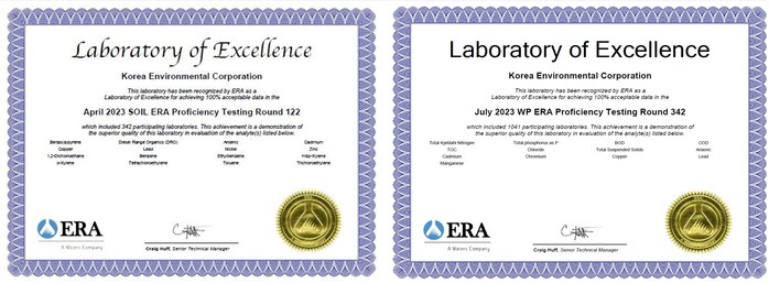 ERA가 주관하는 국제숙련도 평가는 전 세계 분석 기관들이 참여하여 신뢰성 및 정확도를 검증하는 제도로, 분석결과를 만족·경고·불만족 등 3단계로 평가하고 모든 항목의 결과가‘만족’일 경우에만 최우수 분석기관(Laboratory of Excellence) 인증서를 획득할 수 있다.