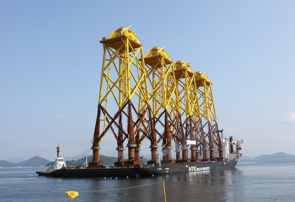 | ▲ 국내 최초, 해상풍력발전 하부구조물을 수출하는 (주)삼강앰앤티의 선박이다. (사진출처=삼강앰앤티) |