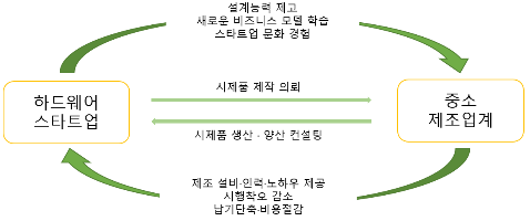 | ▲ '하드웨어 스타트업' 과 '중소제조업계' 간 업무 협업 프로세스이다. (사진출처=한국무역협회) |