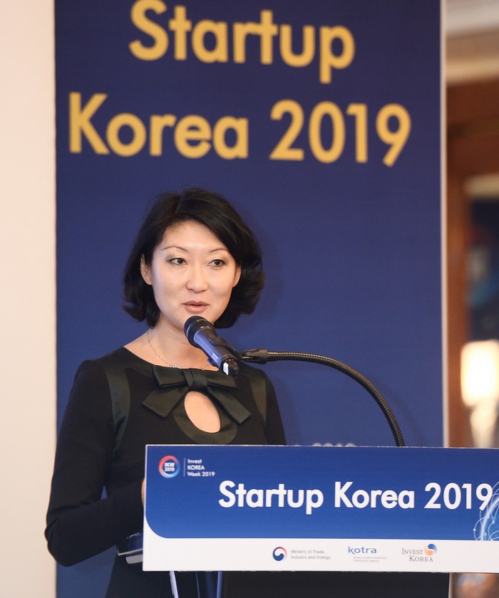 | ▲'2019 스타트업 코리아'에서 기조연설을 하는 코렐리아 캐피털 대표 플뢰르 펠르랭 [사진=KOTRA] |
