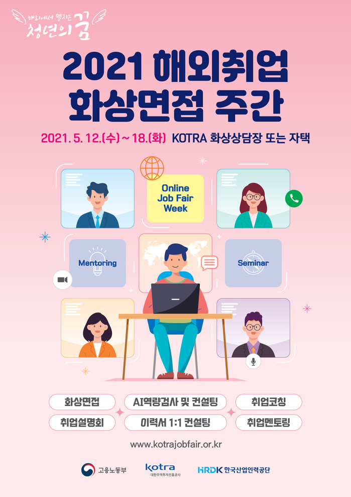 또한 KOTRA는 지난 10일부터 이틀간 구직자를 대상으로 전문 강사와의 모의 화상 면접을 진행하고 피드백을 제공하는 ‘해외취업 코칭’을 진행했다. 12일부터는 해외취업 선배가 직접 근무환경, 생활방법 및 면접요령 등을 알려주는 ‘해외취업 멘토링 상담’도 이어졌다.