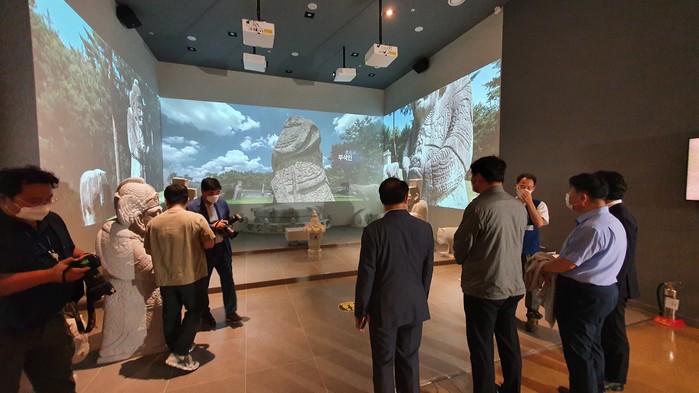 | ▲ 박환희 운영위원장 등이 태릉 조선왕릉전시관을 살펴보고 있다. |