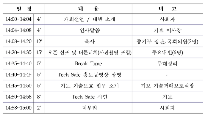 이번 행사는, 시스템 오픈을 선포하고, 홍보동영상 상영 및 기술보호 업무 소개와 시스템 시연 순으로 구성했다.
