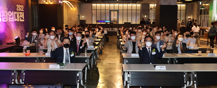| ▲ 2022 환경창업대전 최종 경연 및 시상식 참가자 단체 사진<사진제공=환경산업기술원> |