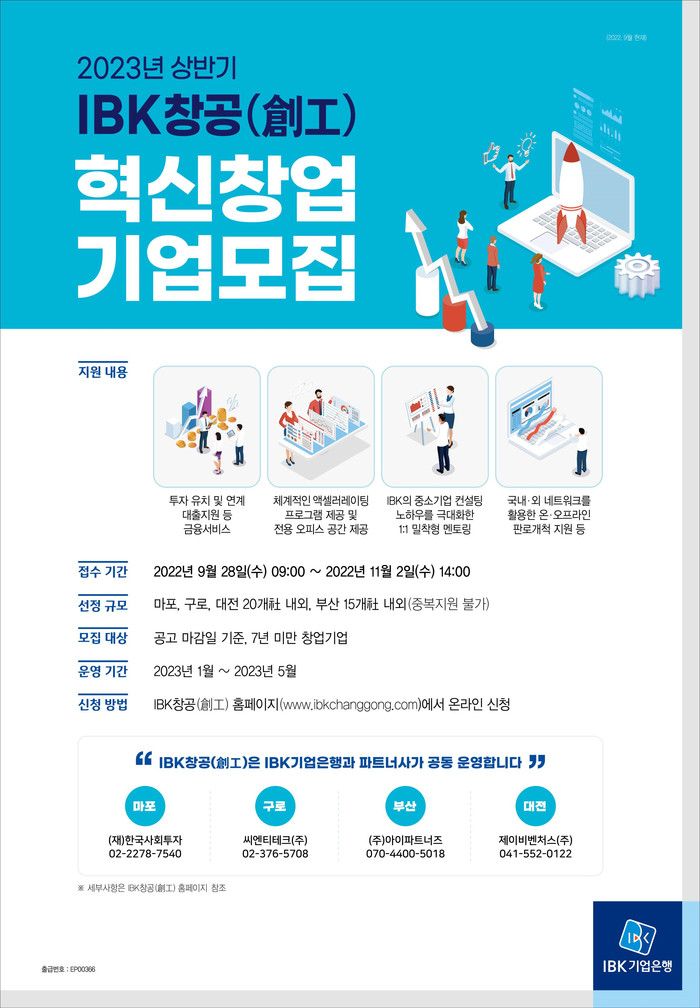 기업은행 관계자는 “혁신적인 아이디어와 유망한 사업모델을 갖춘 혁신창업기업들이 IBK와 함께 성장할 수 있는 좋은 기회가 되길 바란다”고 말했다.