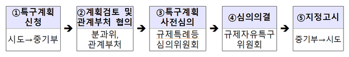 | ▲ 특구 계획 신청과 지정에 대한 절차이다. (사진출처=중기부) |
