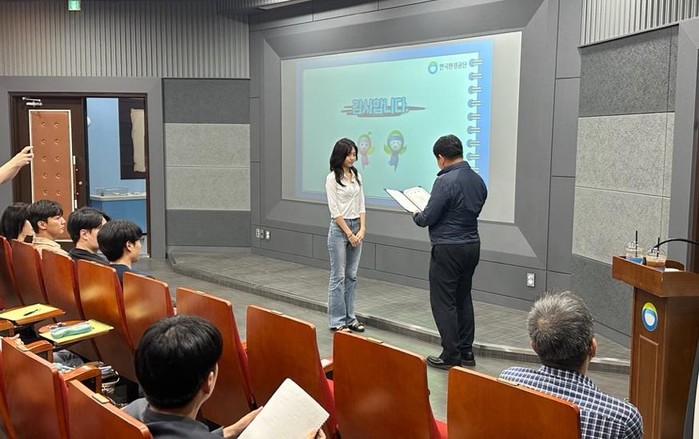 | ▲ 교육 수료증 배부<사진제공=한국환경공단 광주전남제주환경본부> |