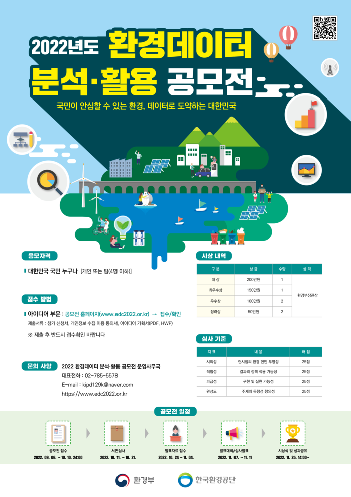기존에는 환경부 소속·산하기관을 대상으로 정책 활용 전문적 데이터 분석과제 부분을 중점으로 진행하였으나, 올해는 응모 대상을 대국민까지 확대하여 일상생활에서 국민에게 유용한 정책 아이디어를 발굴하고자 한다.