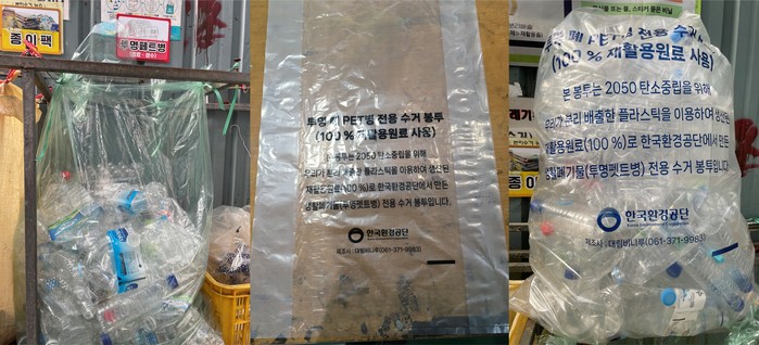 현재 공동주택이나 공공장소에서 재활용품 분리수거를 위해 사용되는 비닐봉투는 일반 제품 제조에 사용되는 고품질 플라스틱 원료로 만들어진다. 쓰레기 처리를 위해 신제품을 사용하는 격이다.