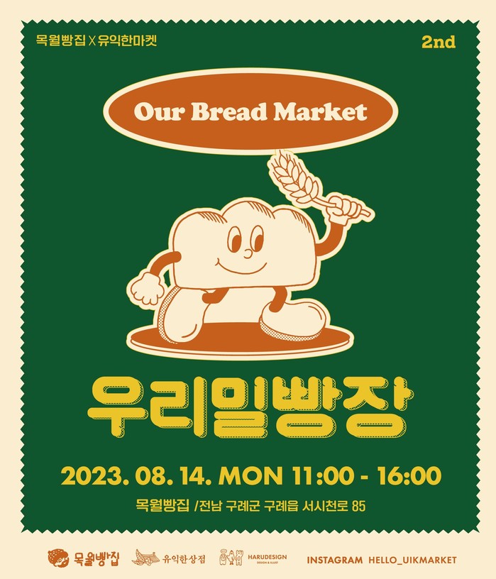 우리밀빵장은 8월 14일 오전 11시부터 오후 4시까지 구례 목월빵집 일원에서 진행된다.