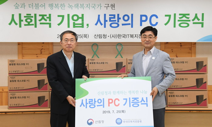 [더스타트 = 윤상학 기자] 지난 25일, 산림청은 정부대전청사에서 정기 재물조사를 통해 나온 ‘중고 컴퓨터’를 비롯해 다양한 전산기기를 정보소외계층에게 무상으로 전달하는 ‘사랑의 PC 기증 행사’를 개최했다고 밝혔다.
