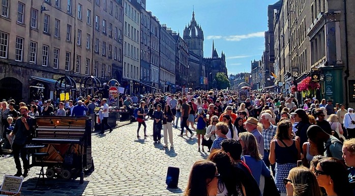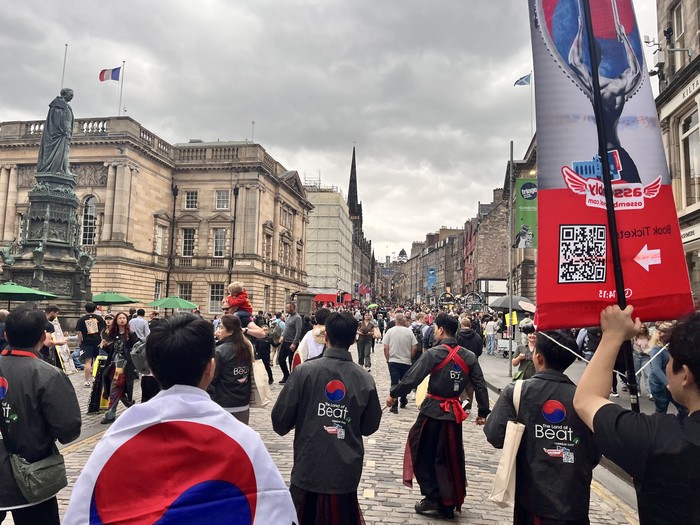 | ▲ 세로토닌 예술단 ‘The Land of Beat’ 거리 홍보 및 에든버러 페스티벌 전경/사진제공=세로토닌문화 |