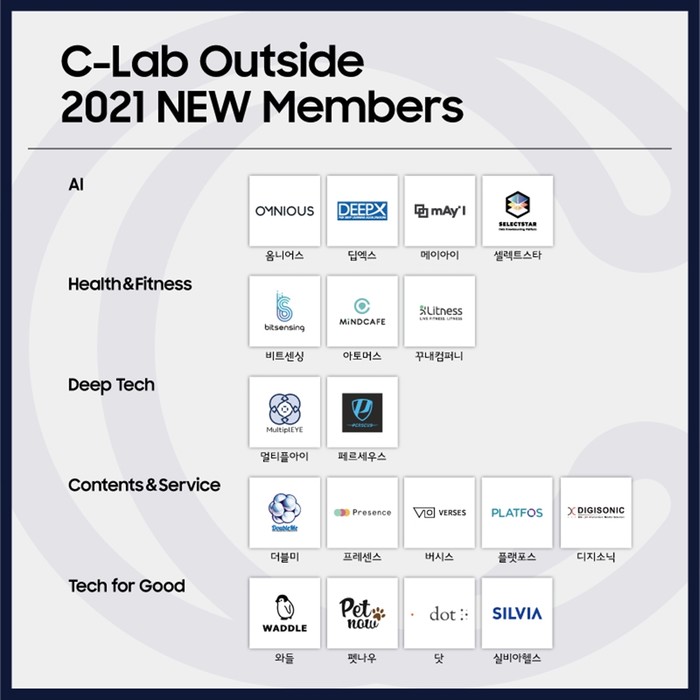 | ▲ 2021 C-Lab 아웃사이드에 선정된 18개 스타트업 (사진출처=삼성전자 New Members) |