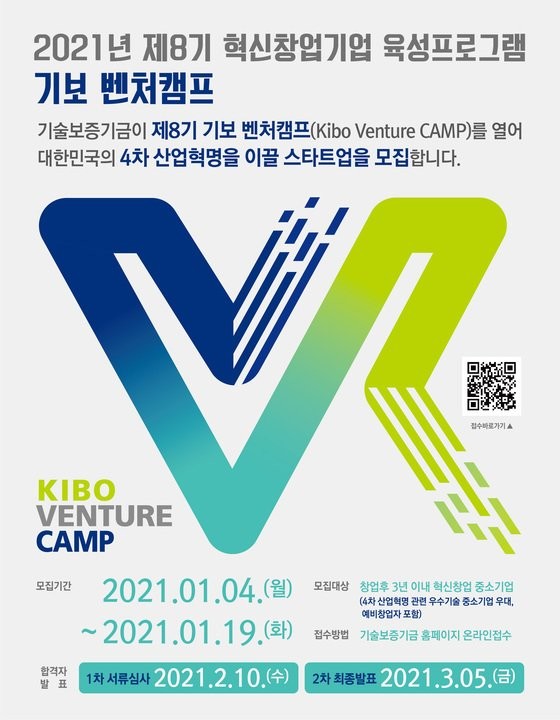 | ▲ 내년 1월 4일부터 19일까지 모집하는 기보벤처캠프의 포스터이다. (사진출처=기술보증기금) |