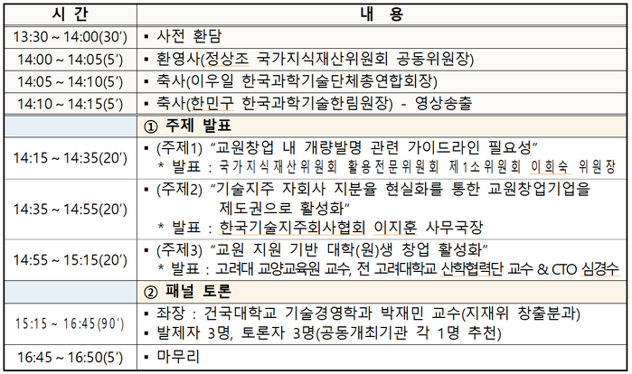 | ▲ '교원 창업'에 대한 토론회를 장려하는 포스터이다. (사진출처=지재위) |