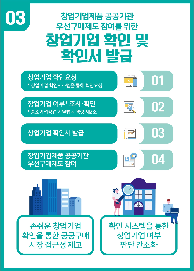 또한, 해당 제도에 참여를 희망하는 중소기업이 ‘창업 기업 여부’를 확인하는 과정에서 그 업무의 절차와 법령이 구체화되었다.