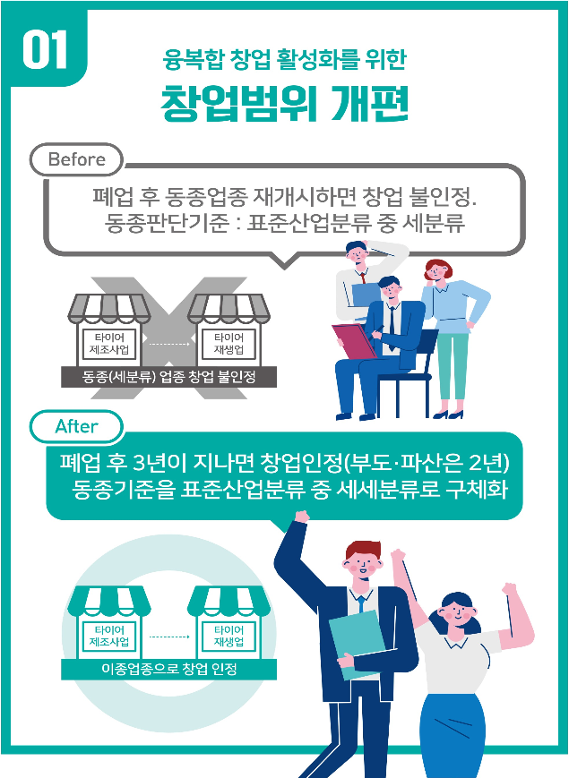 - 창업 인정 범위 개편 : '물적 요소'에서 '인적 요소'로 기준을 변경했다.