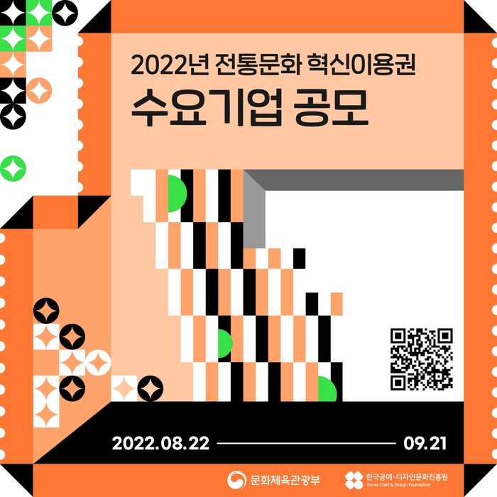 이에 따라 오는 9월 21일까지 모집하는 전통문화 혁신이용권 수요기업의 공모 분야는 ‘사업고도화’와 ‘기술혁신’ 2개 분야, 총 37개 수요기업을 선정, 기업당 최대 2천만 원 상당의 맞춤형 서비스를 지원하게 된다. 최종 선정된 수요기업은 지원금액 한도 내에서 공급기업이 제공하는 서비스 이용이 가능하다.