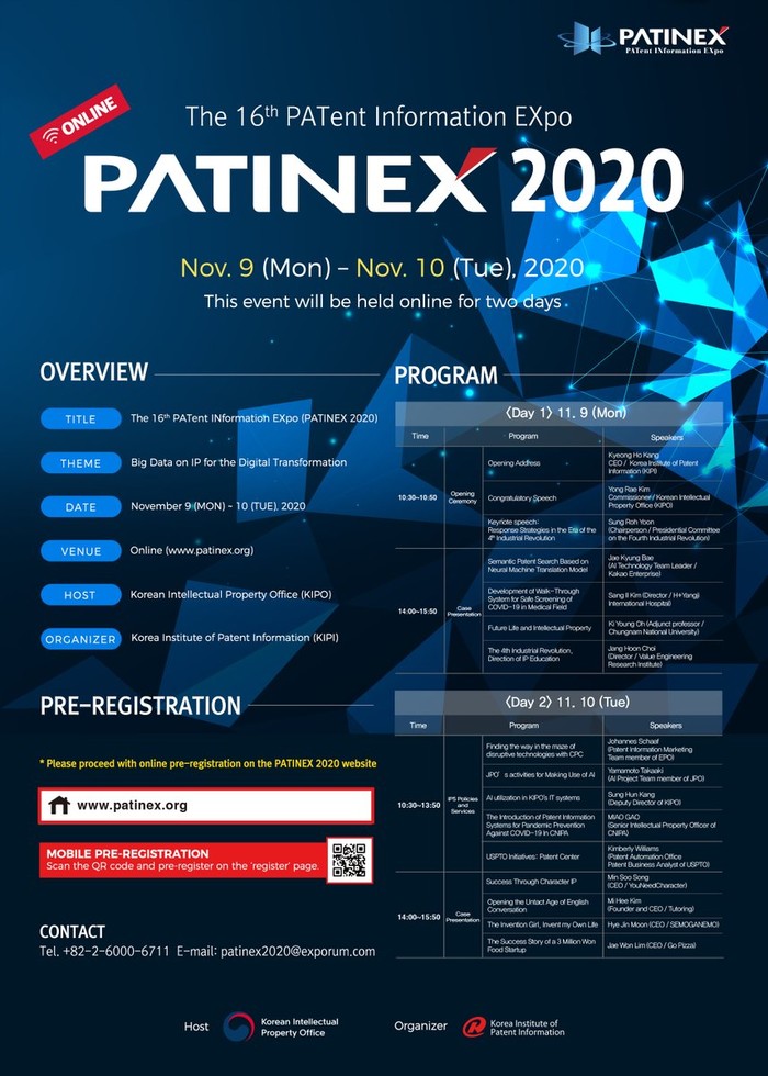 현성훈 특허청 정보고객지원국장은 “이번 행사로 특허 빅데이터의 유용성이 널리 알려지기를 기대한다.” 며, “현장 참관 부담이 없는 온라인 행사로 개최하는 것만큼 관심 있는 국내·외 많은 참관객들의 참석을 바란다.” 고 전했다.